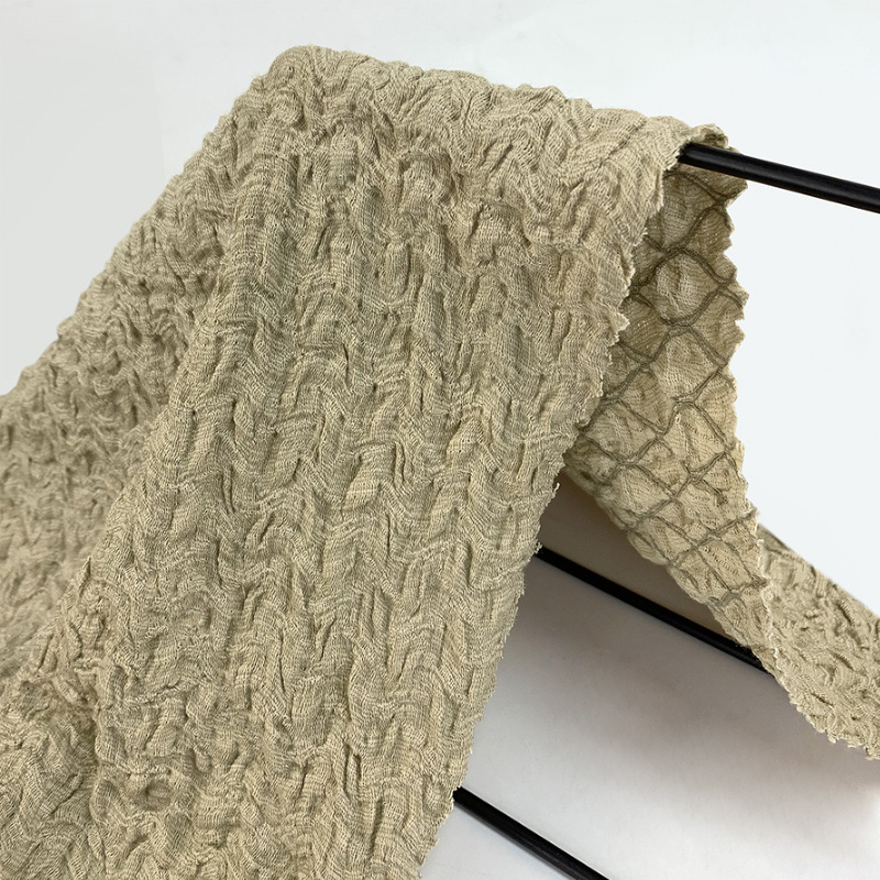 Główną cechą tkaniny bąbelkowej jest jej wklęsła i wypukła faktura bąbelkowa. Ta struktura nadaje tkaninie silne trójwymiarowe i puszyste uczucie, niepowtarzalny wygląd i daje ludziom modne i nowatorskie uczucie. Jest miękki i puszysty w dotyku, wygodny w noszeniu i nie daje poczucia skrępowania.