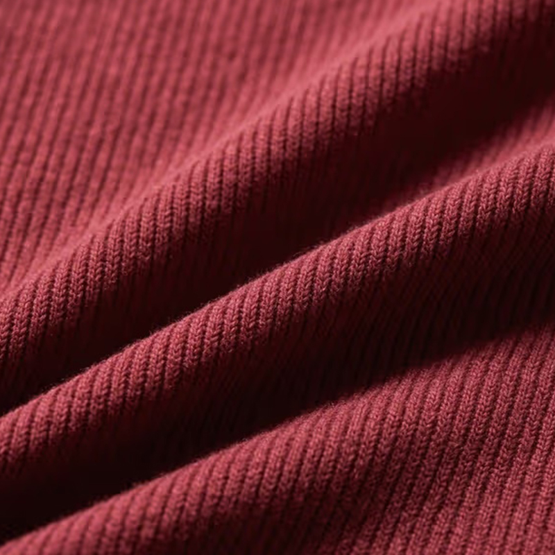 Tkanina aksamitna prążkowana 1*1 to tkanina, która wykorzystuje proces tkania 1 igła w górę i 1 igła w dół, a jej powierzchnia jest pokryta delikatnym aksamitem (cienkim aksamitem), który doskonale zatrzymuje ciepło i jest miękki w dotyku. Prążkowana struktura tkania sprawia, że tkanina jest bardzo elastyczna, dobrze dopasowuje się do skóry i zapewnia wygodę noszenia, szczególnie nadaje się do stosowania w zimnych porach roku. Aksamitna powierzchnia tkaniny jest nie tylko miękka i delikatna, ale także zwiększa komfort, skutecznie zatrzymując ciepło i zapobiegając przedostawaniu się zimnego powietrza. Tkanina ta dobrze zatrzymuje ciepło i nadaje się na odzież zimową, szczególnie na kołnierze swetrów i paski w legginsach, zapewniając dodatkowe ciepło i wsparcie dla tych części. Ściągacz 1*1 zapewnia tkaninie większą elastyczność, umożliwiając jej swobodne rozszerzanie i kurczenie się, zapewniając dopasowanie i wygodę podczas noszenia.